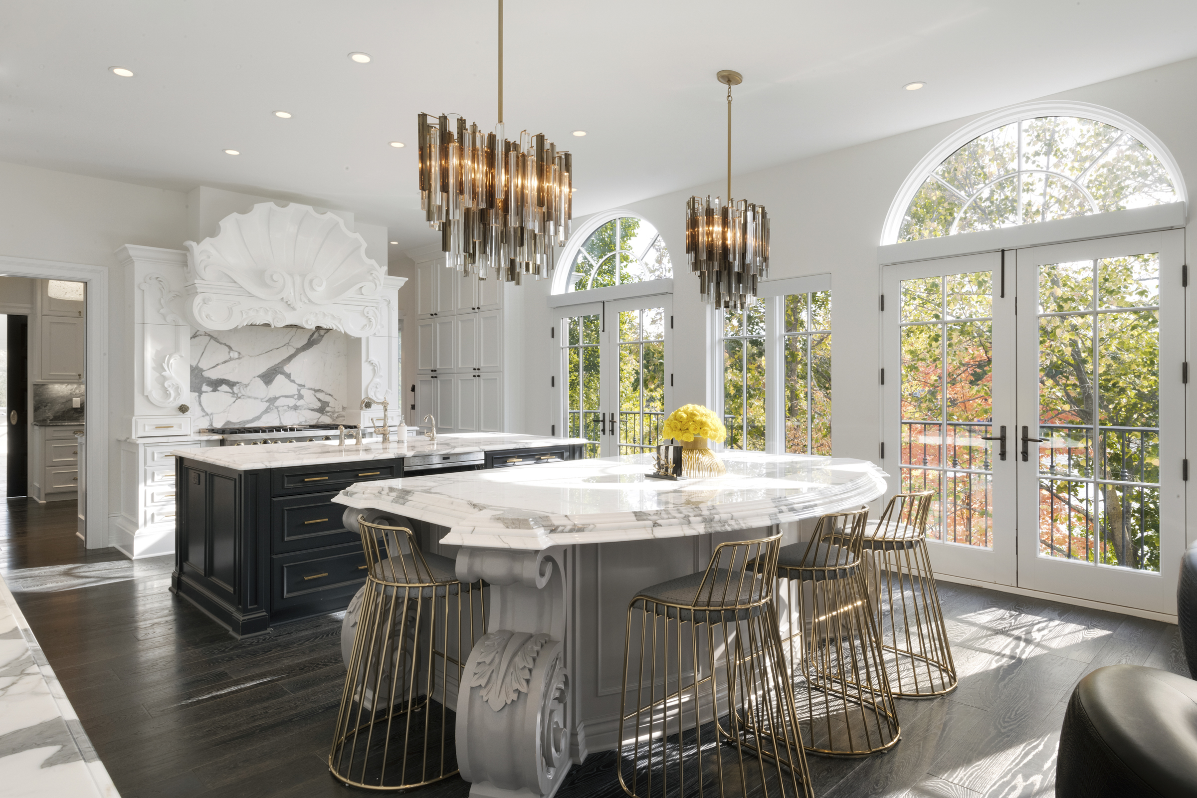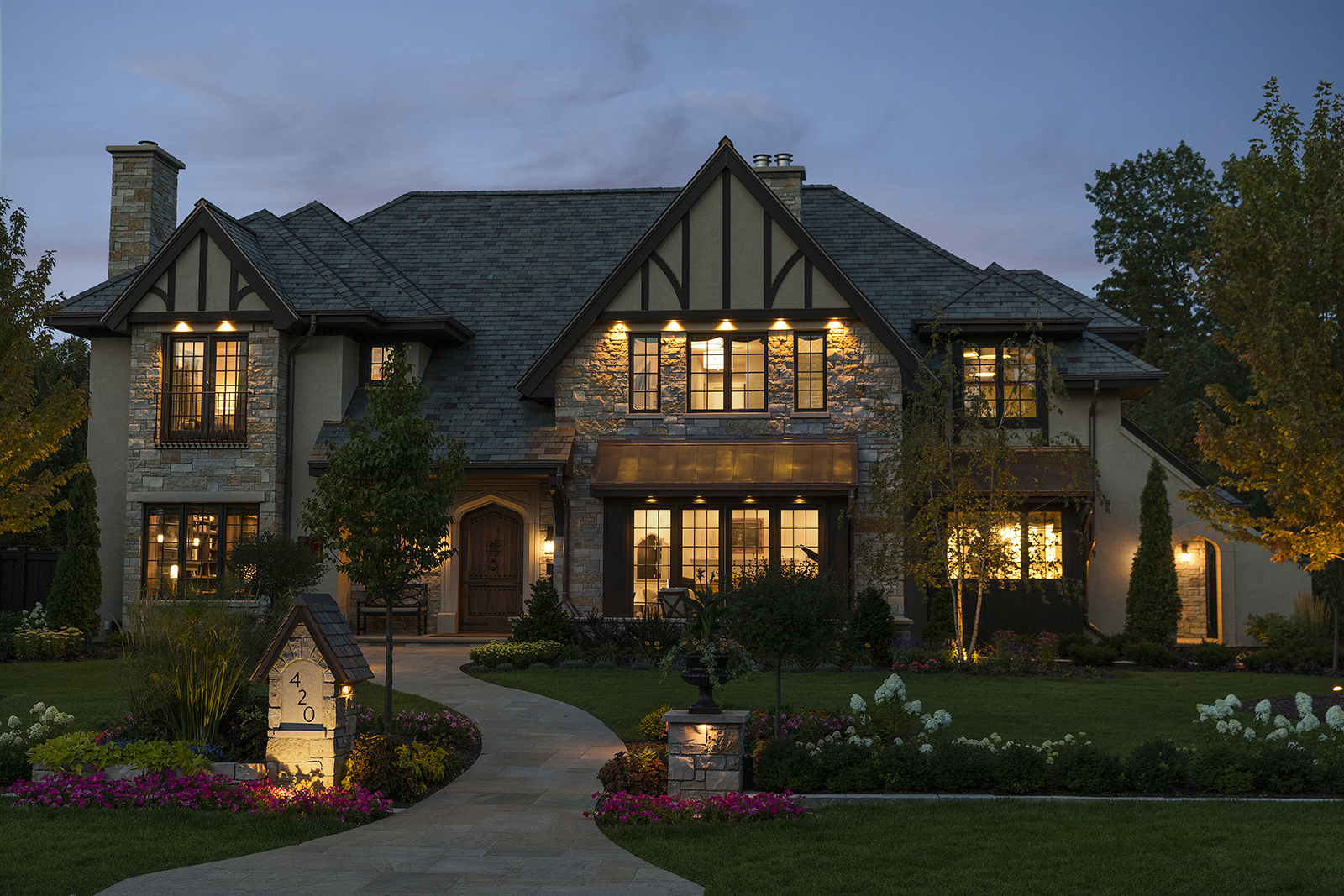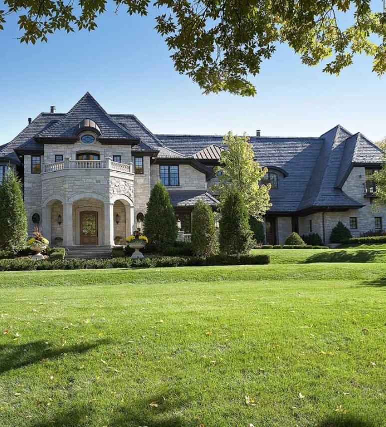 With its classically inspired stone and copper exterior, this home is reminiscent of traditional European estates.