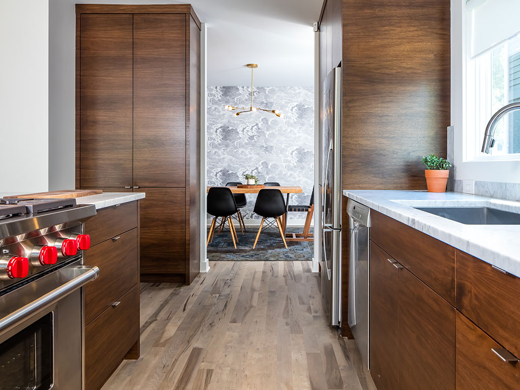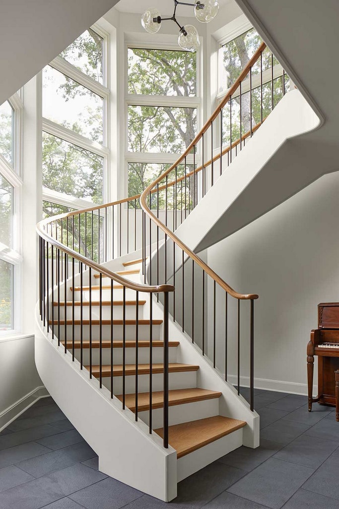 Mid-century modern details complement the classic Colonial architecture in this freshly renovated home.